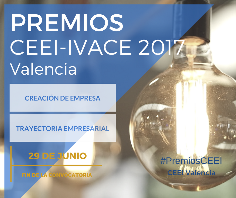 IVACE y CEEI Valencia convocan la 20ª edición de los PREMIOS CEEI-IVACE 2017 VALENCIA, cuyo objetivo es reconocer el esfuerzo de empresas innovadoras en el ámbito de actuación del CEEI Valencia (Provincia de Valencia y las Comarcas de l'Alcoià, el Comtat y la Foia de Castalla, de la provincia de Alicante), para potenciar el tejido socioeconómico, diversificar las actividades empresariales, fomentar el emprendedurismo y la innovación.
