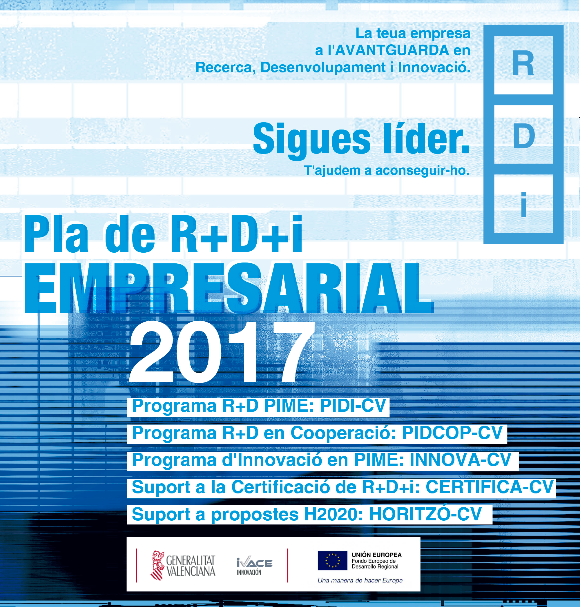 IVACE y CDTI organizan en el mes de mayo diversas jornadas para dar a conocer las ayudas y actuaciones de ambos organismos en 2017 para proyectos de I+D+i empresariales, así como de otras ayudas complementarias a la ejecución de proyectos de I+D.