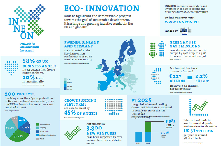 El impulso a esta red nace tras la observación de que una de las principales barreras para el crecimiento de la economía verde sigue siendo el acceso a las fuentes de financiación. En este sentido, la tendencia estudiada es que los inversores utilizan la lógica de inversión habitual para las empresas eco-innovadoras, sin tener en cuenta el valor medioambiental añadido. La eco-innovación no constituye un sector en sí, sino que cualquier tipo de innovación puede ser ecoinnovadora si los beneficios y cualidades ambientales se demuestran. Por ello, INNEON pretende apoyar a los emprendedores en la elaboración de propuestas de interés para los inversores centradas los registros de producto, los mercados potenciales para la compra de la innovación, etc. Todo ello ofreciéndoles las competencias y habilidades empresariales adecuadas para conseguir sus objetivos.