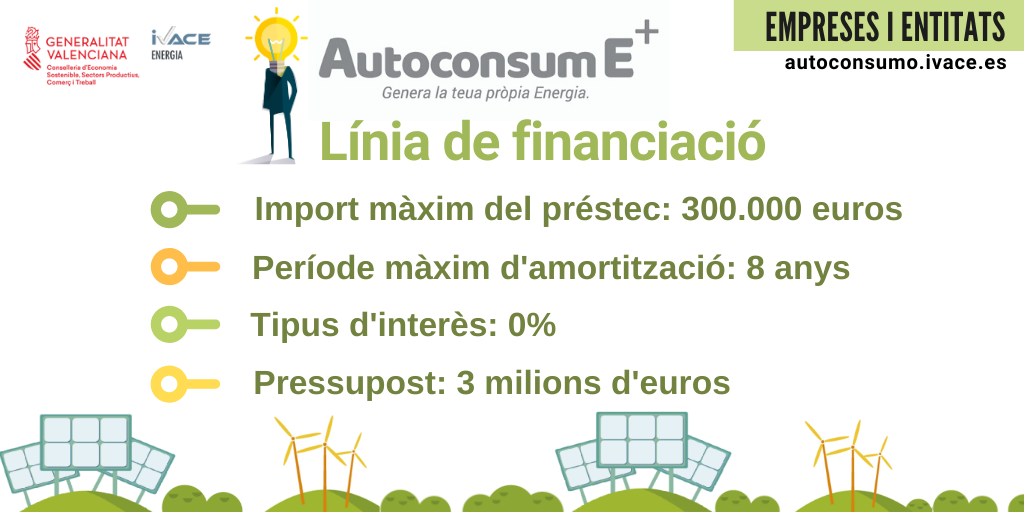 Aquestes ajudes, s'emmarquen dins del Pla AutoconsumE+, impulsat per Ivace Energia en 2017 i poden accedir aquells projectes que suposen la incorporació de sistemes d'autoconsum elèctric basat en energies renovables, com la solar fotovoltaica o l'eòlica.